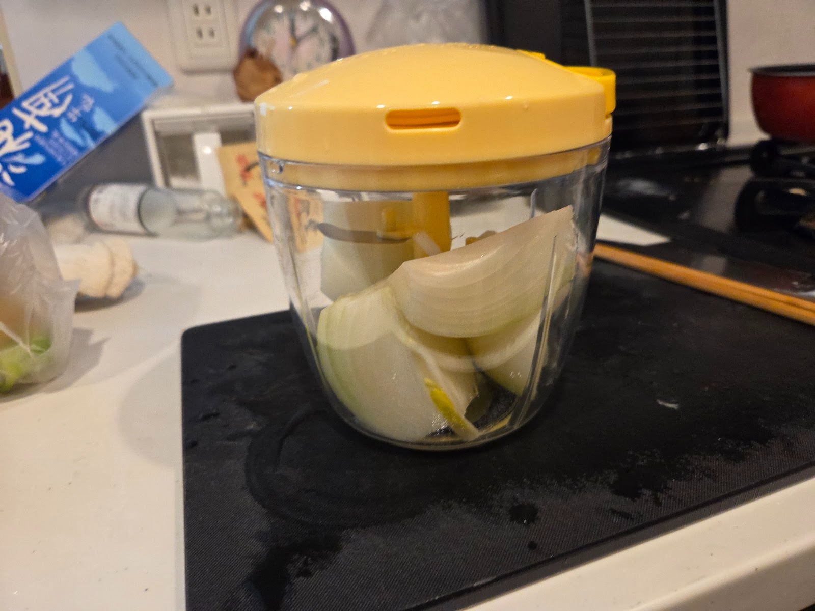 容量は900mlとしっかりあるので、玉ねぎなら1個分は余裕で入り、2個分くらいでも問題なく処理できます。