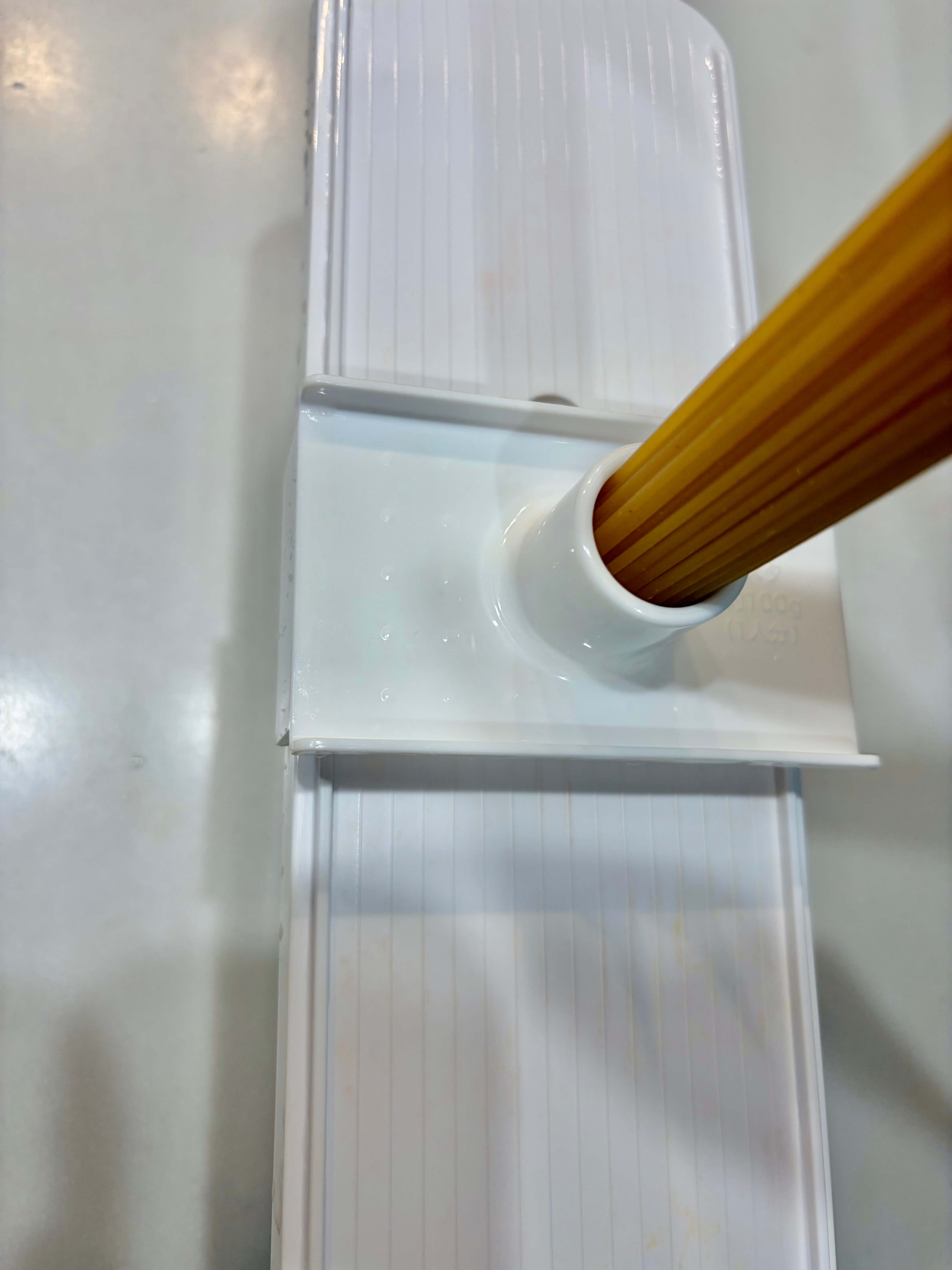 先ほどの、けが防止ガードの持ち手が計量部分になっていて、パスタを差し込めば良いだけという優れものです。