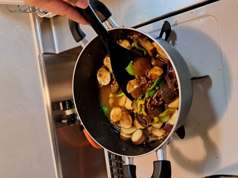 肉や野菜を炒める時に使ったと、「ルーを入れて混ぜるのはどうだろうか?」と悩みましたが、試しに使うと最後までターナースプーンで作れました!