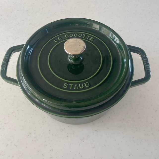 我が家の初めてのストウブは、四人家族で22センチ、ラウンドのグリーンを選びました。