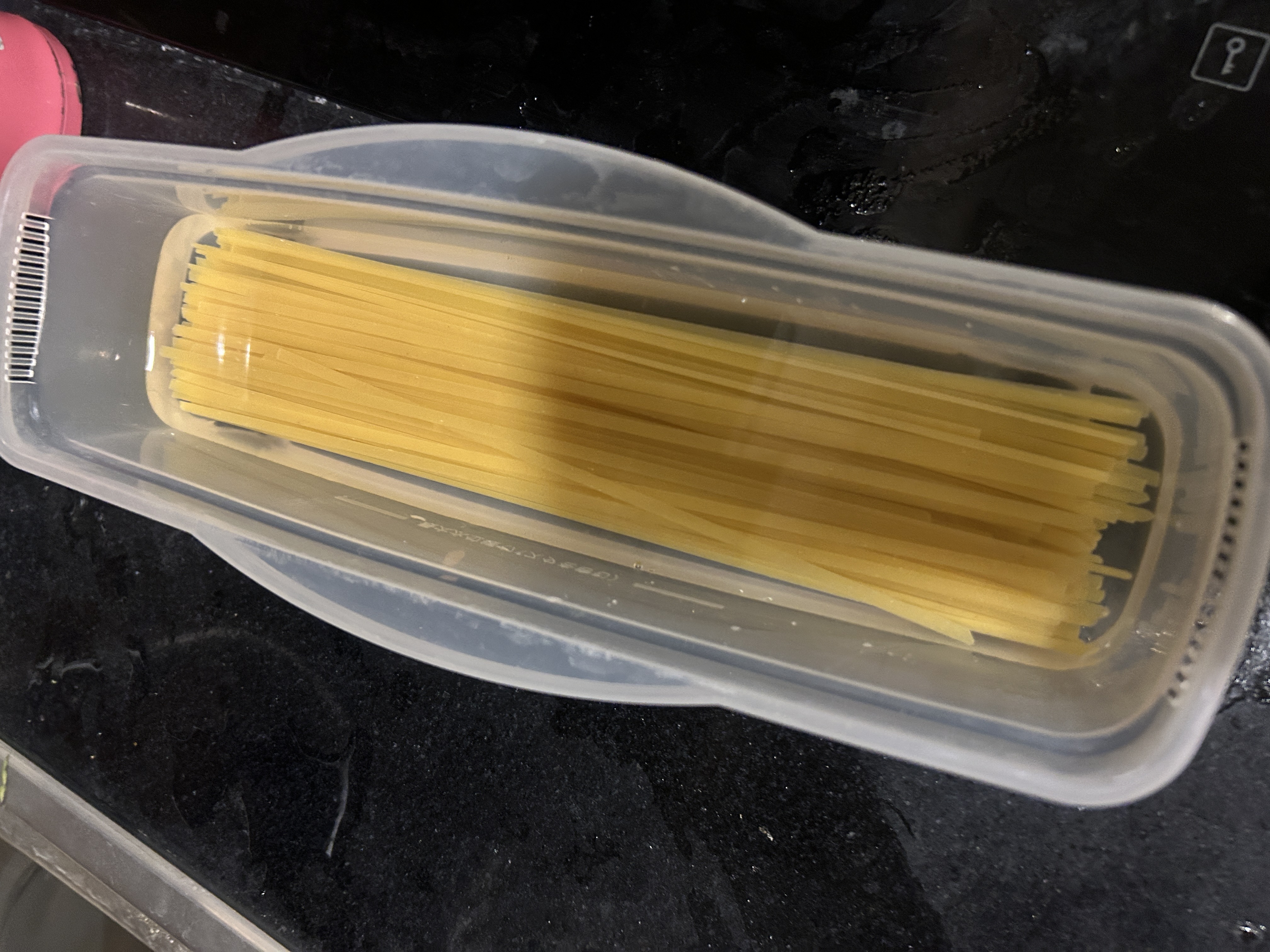 私がそのありがたさに気づいたのは、スーパーでもよく見かける細長いプラスチックのケース、いわゆる「レンジでパスタを茹でる容器」を使ったときでした。