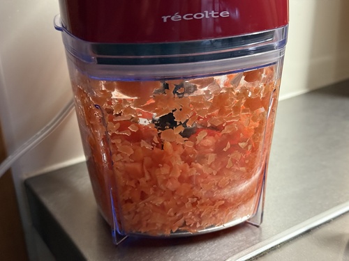 手でみじん切りをしていると、にんにくの匂いや玉ねぎで涙が出たり、時間がかかってイライラしたり。