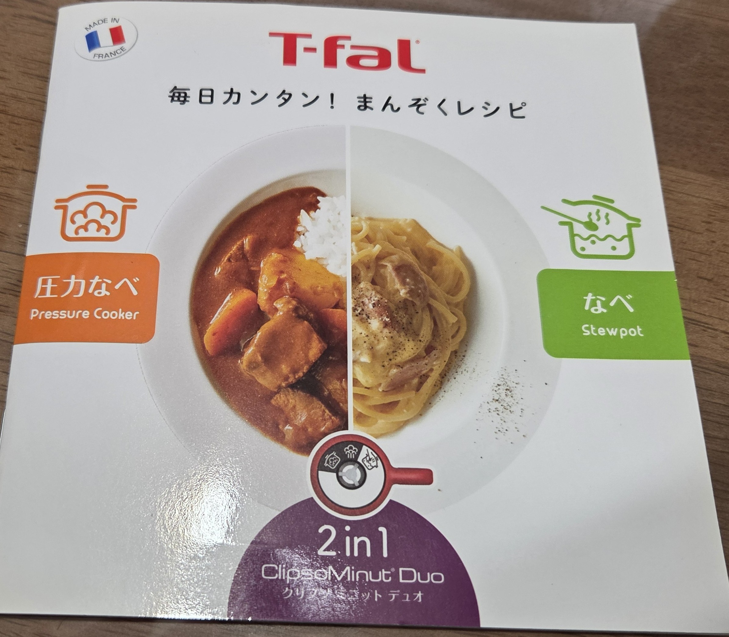 購入時に簡易的なレシピ本が付いてくるのも、地味ですが嬉しいポイント。圧力鍋の基本的な使い方だけでなく、実際の献立例が載っているので、「何を作ろう?」と迷ったときの参考になります。特に圧力鍋は、最初は火加減や加熱時間に不安を感じがちですが、目安が分かるだけでも心理的なハードルがぐっと下がりました。