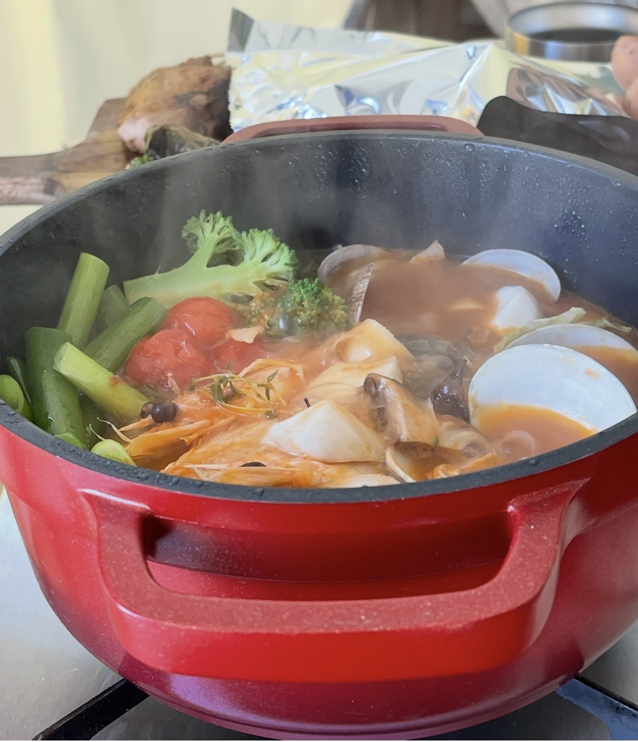 例えば、キャベツと人参、玉ねぎを鍋に入れて火にかけ、その間にメインの魚や肉料理を調理していると、メインが完成する頃には、野菜の甘みが凝縮された優しい味わいのスープが出来上がっています。