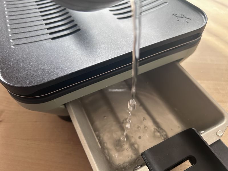 食材からでた脂が、スリットの穴から下にある水トレイに落ちる