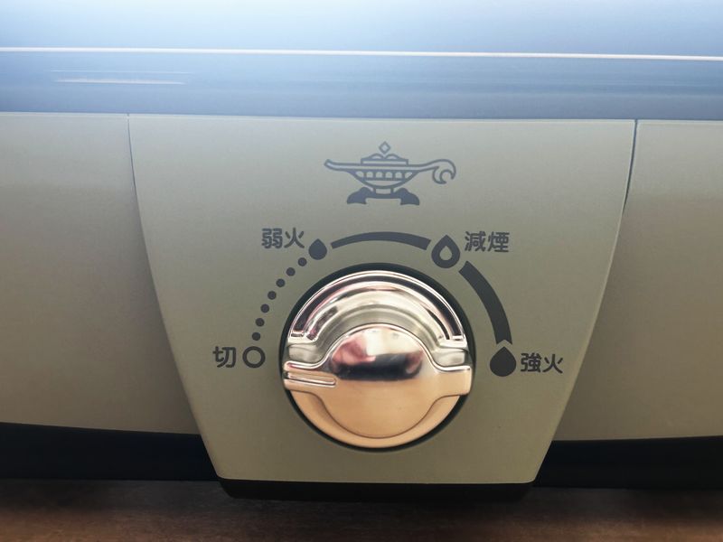 ダイヤルの切り替えは、弱火・減煙・強火の3つ。