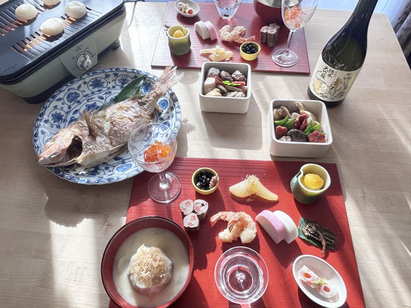 お餅を焼きながら、座りっぱなしで家族とおせちを楽しめた元日の朝!