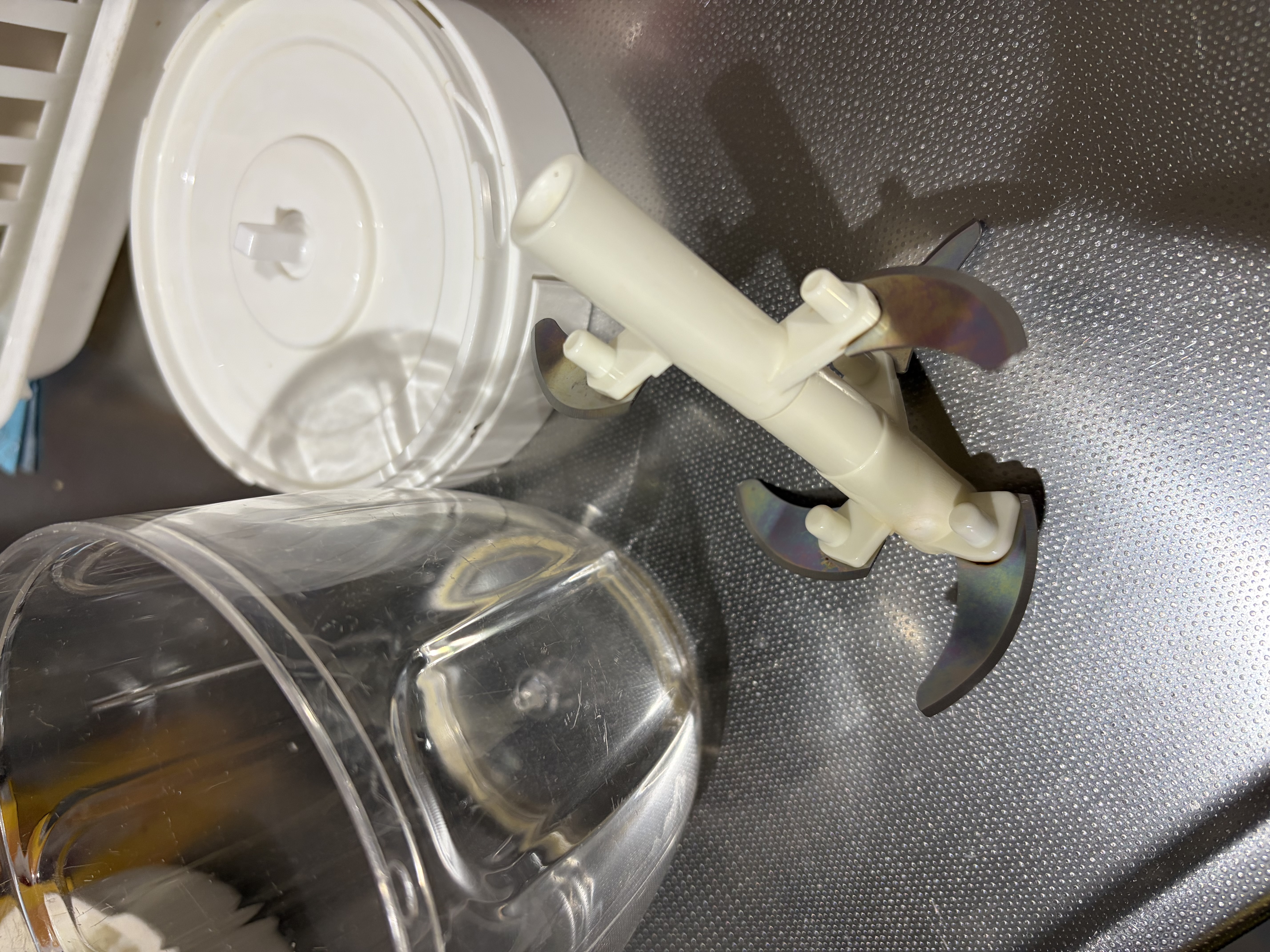 玉ねぎ1個、人参1本は余裕で入るので、4~6人家族であればそれぞれ一回ずつでみじん切りできるサイズ感です。蓋についているパーツを引っ張るだけで、中の刃が高速回転して野菜を切ってくれる仕組みです。